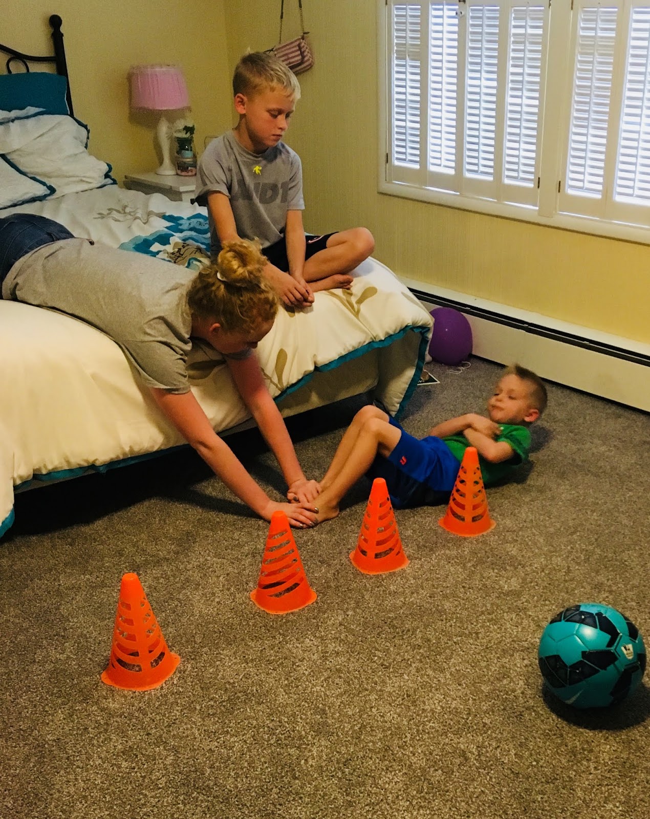 Have I mentioned that Pace asks Maddie to coach him in soccer nearly every day? Well it continues... Lots of sit-ups happen if he happens to do a hand ball: